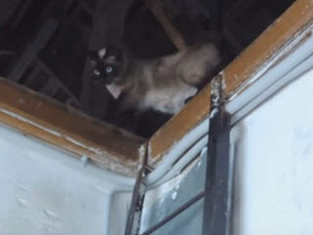 Нашей четырёхлапой героине нужно было спуститься чердака. То, как она это сделала, просто гениально. Она спустилась так, как это делают люди.