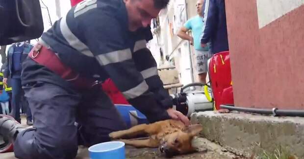 Румынский пожарный спас жизнь собаке, сделав ей искусственное дыхание