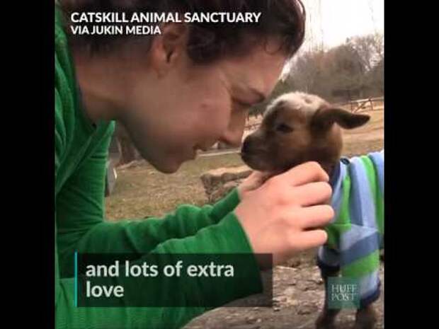 Эту чудесную козочку зовут Виолета. Увидев её, вы поймёте, что милыми могут быть не только котята и щенки. Так получилось, что у мамы-козы не хватало молока на всех своих малышей и она начала бить эту кроху. Чтобы не случилось беды, Виолету отдали в заповедник.