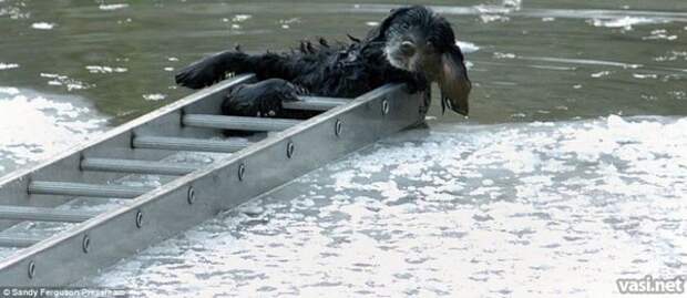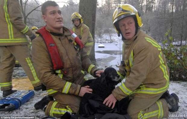 17 пожарных вытаскивали бедного пса около 30 минут.