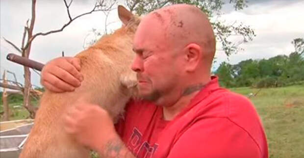 Торнадо невероятной силы разрушил дом и перевернул автомобиль этого мужчины. Но это всё меркло по сравнению с тем, что пропал его любимый пёс. Но случилось чудо, животное смогло выжить во время стихии.