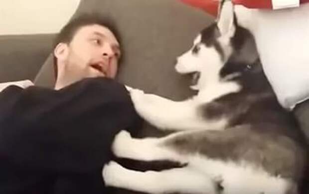 Щенку хаски не понравилось поведение его хозяина и он решил с ним поругаться